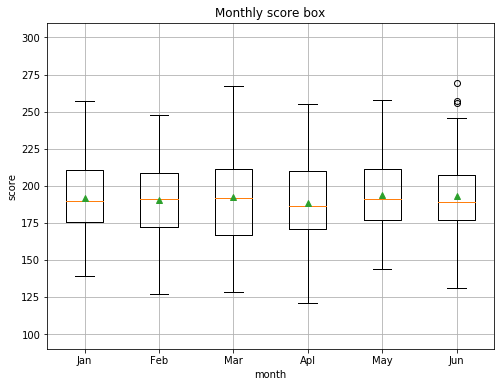 ここ半年の月別のスコア分布