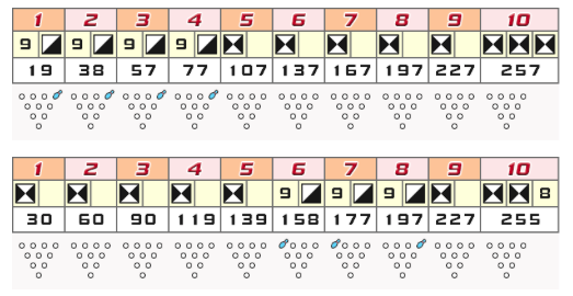 2ゲーム目と3ゲーム目で、ストライクが続けて、13個でている。(ゲームまたがりのパーフェクトストライク数である)